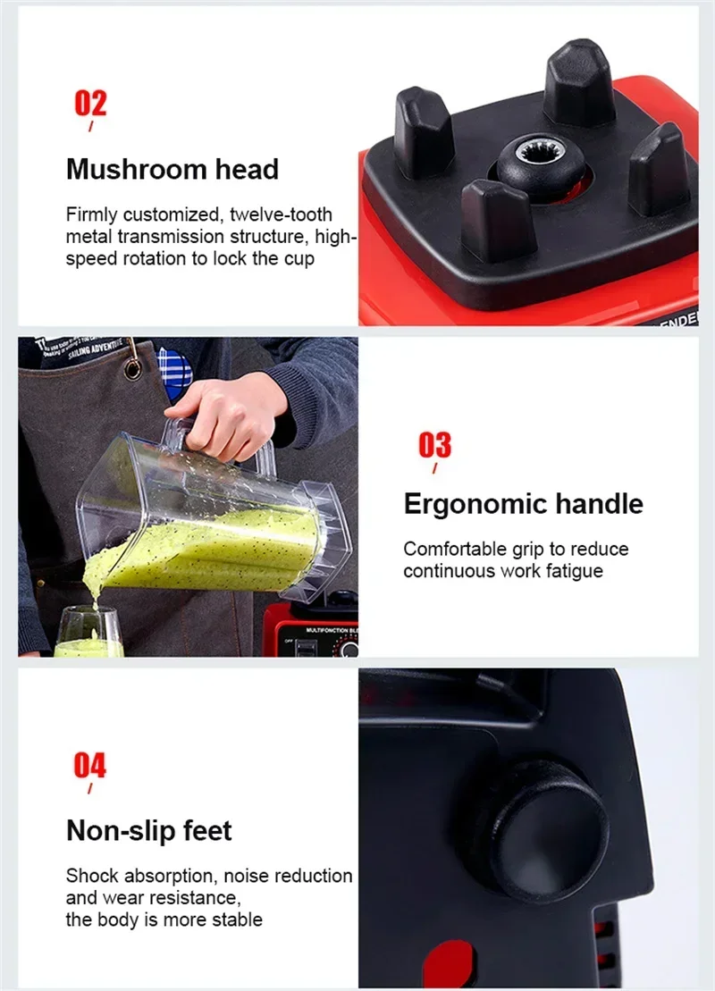【Mélangeur de cuisine haute performance】 Le moteur de 2000 watts a le pouvoir d’écraser les fruits entiers, les légumes et la glace en quelques secondes. Puissante extraction de nutriments et de vitamines fournit une grande dégustation, boissons nutritives!
